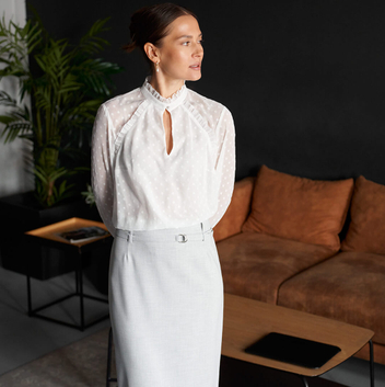 Мы производим женскую одежду премиального уровня качества и стиля по приемлемым ценам и хотим видеть каждую бизнес-леди в одежде NELVA.