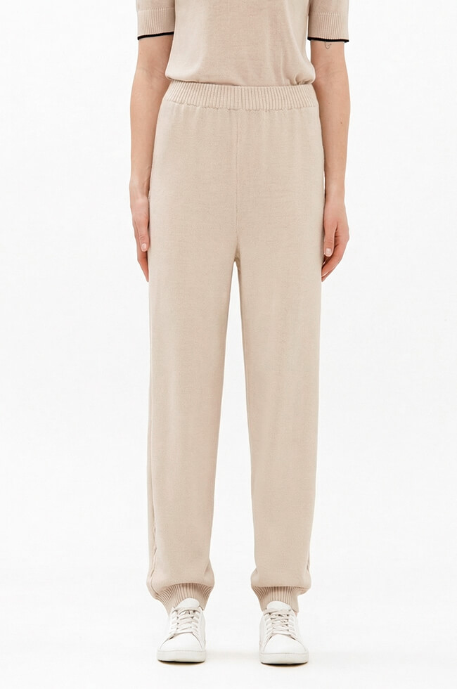 Вязаные прямые брюки выполнены из смесового полотна с добавлением шерсти и вискозы. Мягкие и приятные на ощупь, защищают от холода, обеспечивая комфорт даже в прохладную погоду. Отлично сочетаются со свитером из того же полотна, создавая уютный и гармоничный комплект для отдыха, путешествий, прогулок или повседневных дел.